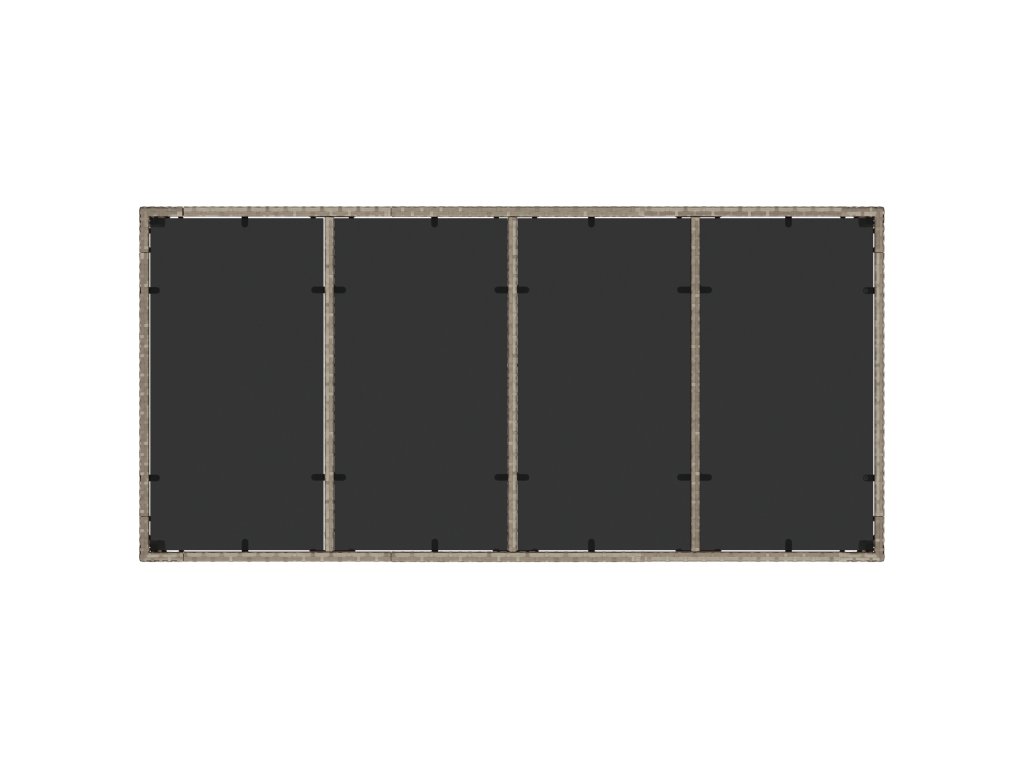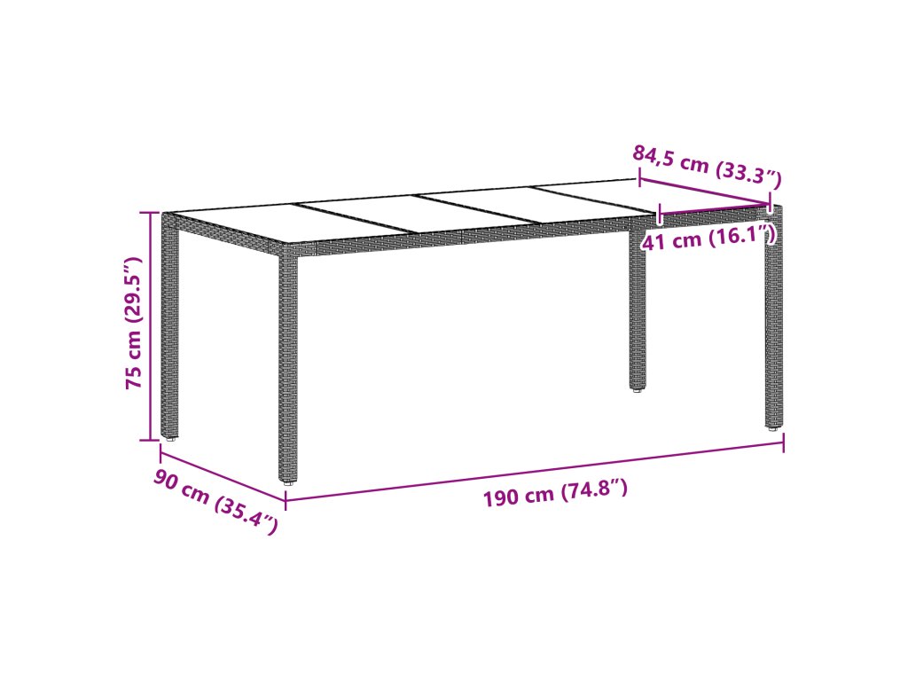 - Odolné materiály: Vyrobený z UV-odolného polyratanu a robustní práškově lakované oceli, tento stůl je navržen tak, aby odolával všem povětrnostním podmínkám. Jeho pevná konstrukce zajistí, že bude vypadat skvěle a fungovat dobře i za různých podmínek, což z něj dělá dobrou volbu pro trvalé venkovní stolování.