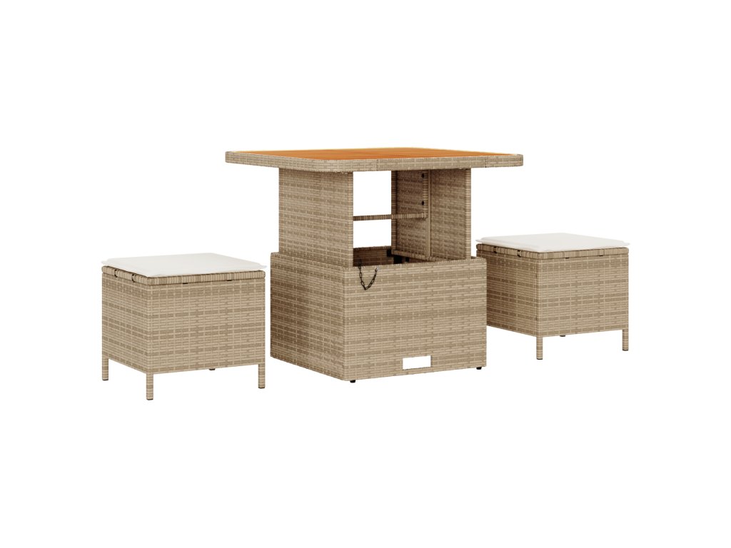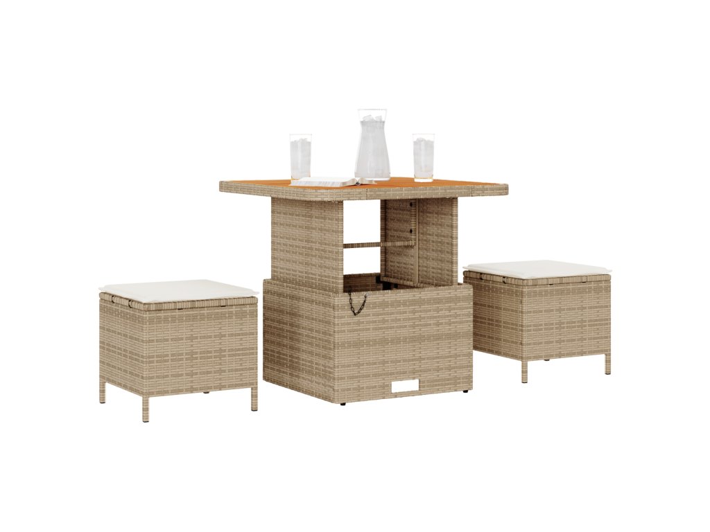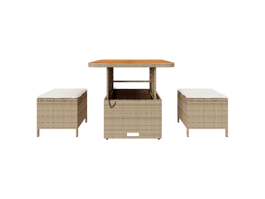 Tato moderní ratanová venkovní jídelní souprava spojuje styl a pohodlí, což z ní dělá skvělou volbu pro jakýkoliv útulný balkon nebo zimní zahradu. Díky krásným béžovým a krémovým odstínům se souprava skvěle hodí k různým venkovním stylům, a poskytuje ti skvělé místo na jídlo nebo jen tak na relax.