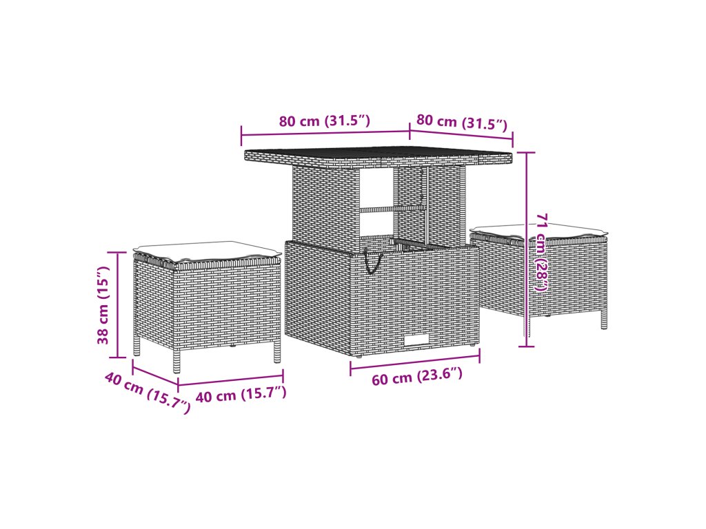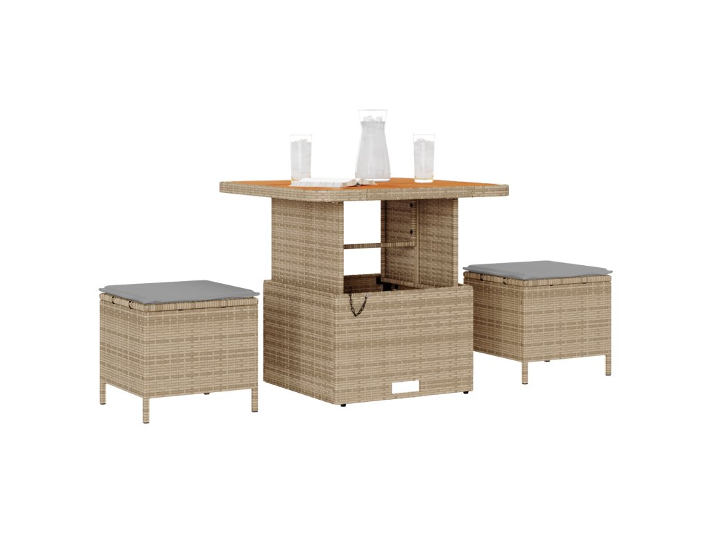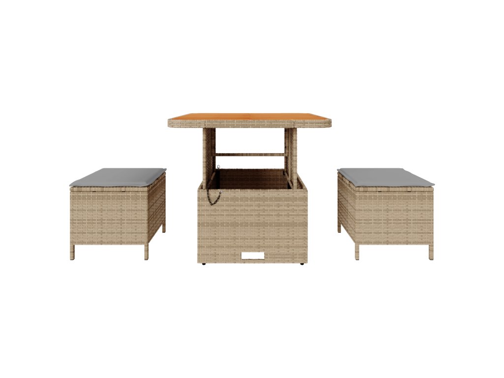 - Praktické úložiště: Vestavěné úložiště pod stolem drží jídelní potřeby blízko, což snižuje nepořádek a zajišťuje čistou atmosféru i venku.