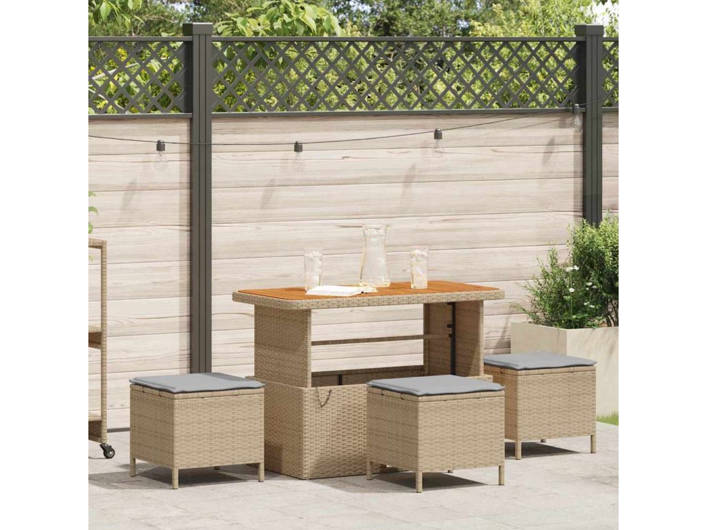 Tento zahradní jídelní set promění venkovní prostory na stylové jídelní plochy díky modernímu designu a pohodlnému sezení. Obdélníkový stůl a tři polstrované stoličky jsou ideální na balkóny, terasy nebo zahrady. Perfektní na jídlo nebo neformální posezení.