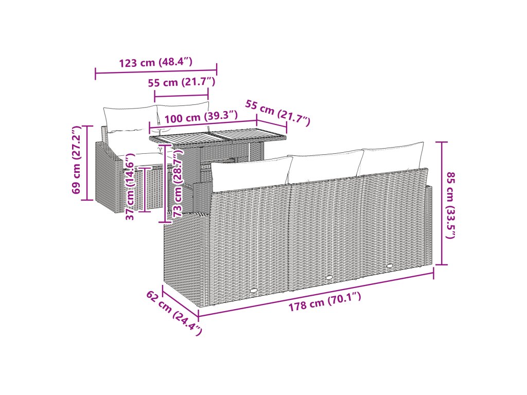 Tato zahradní jídelní souprava spojuje styl s funkčností. Je skvělá pro venkovní jídla a relaxaci. Díky kvalitnímu ratanu a pohodlným polštářům je ideální pro přátele a rodinu, kteří si chtějí užít dobrou náladu na balkoně nebo zahradní terase.
