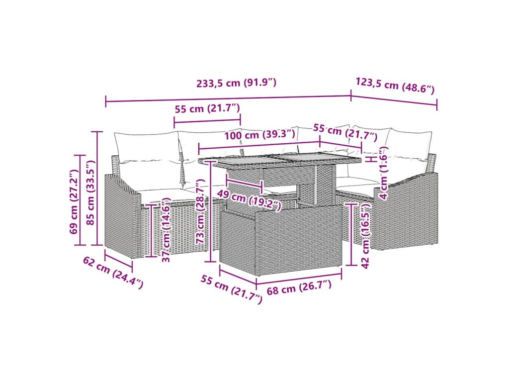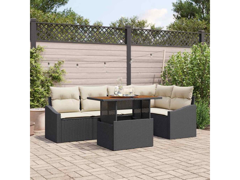 - Dodávka obsahuje: 2 x Arm sofa včetně úložné funkce, 1 x Rohové sedátko včetně úložné funkce, 2 x Středové sedátko včetně úložné funkce, 1 x Zahradní stůl