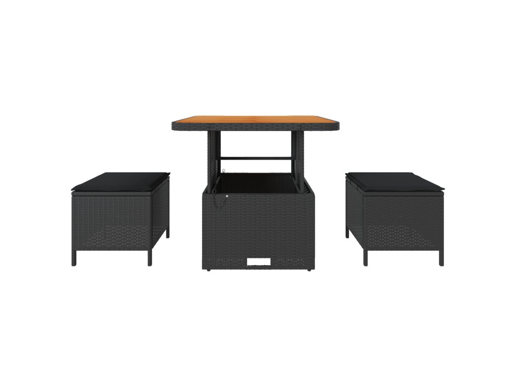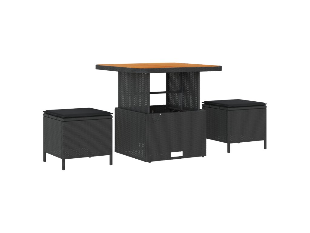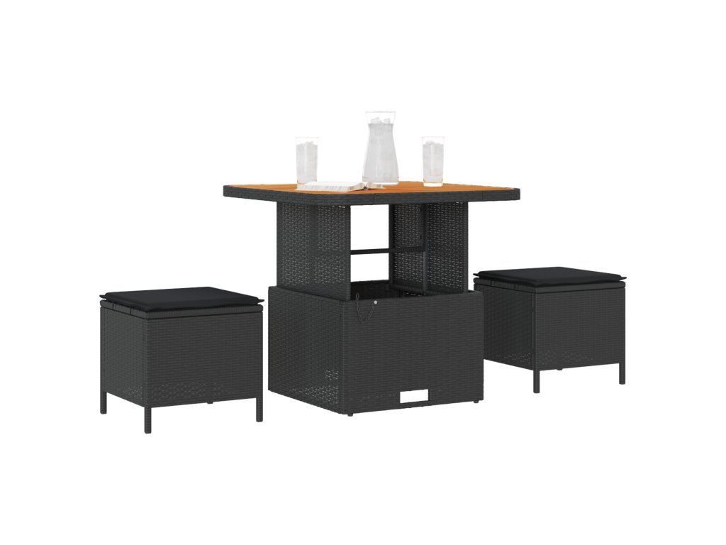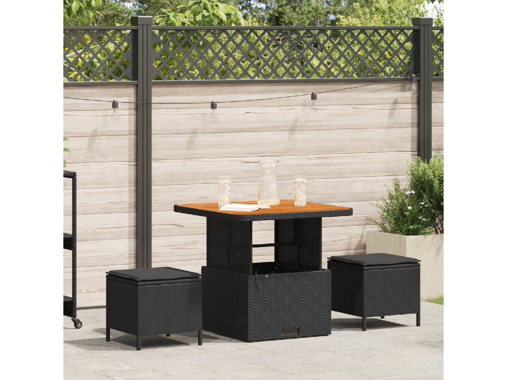 Tato moderní ratanová venkovní jídelní souprava spojuje styl a praktičnost, což ji činí skvělým místem pro stolování a relaxaci venku. Obsahuje čtvercový stůl a dvě měkké stoličky, ideální pro menší setkání, ranní kávu nebo večerní drinky pod hvězdami.