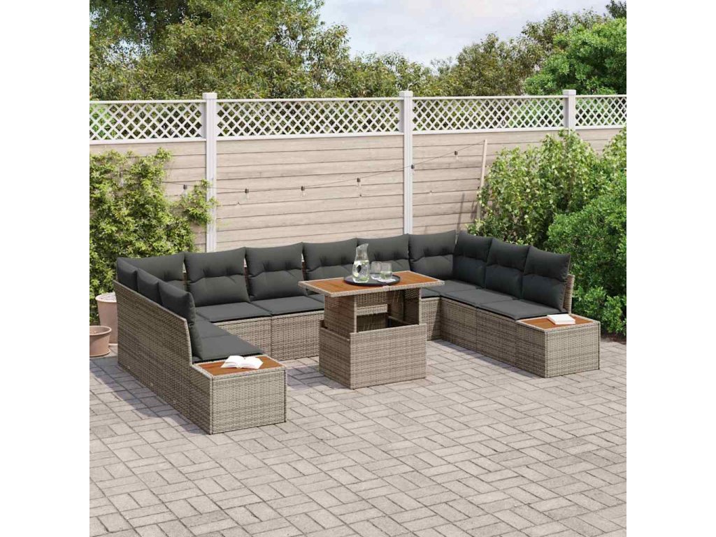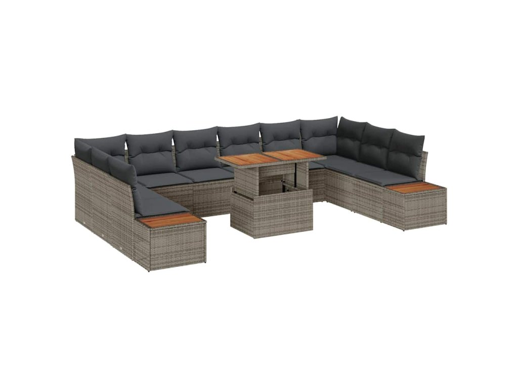 - Stylový design: Kombinace šedého poly ratanu s přírodními akáciovými dřevěnými akcenty.