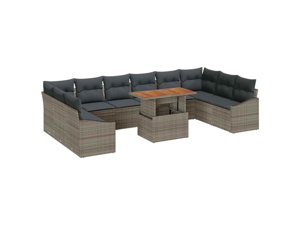 - Dodávka obsahuje: 2 x pohovka s opěrkami (s úložným prostor), 2 x rohové sedadlo (s úložným prostor), 6 x střední sedadlo (s úložným prostor), 1 x zahradní stůl