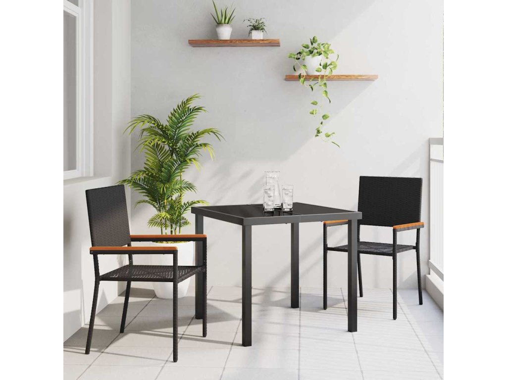 - Součásti: Každý kousek má poly ratanové opěrky, ocelové rámy a tvrzené skleněné desky, což zajišťuje, že všechno vypadá skvěle a dlouho vydrží. Pevné akáciové dřevěné opěrky na ruce dodávají příjemný dotek a pohodlí.