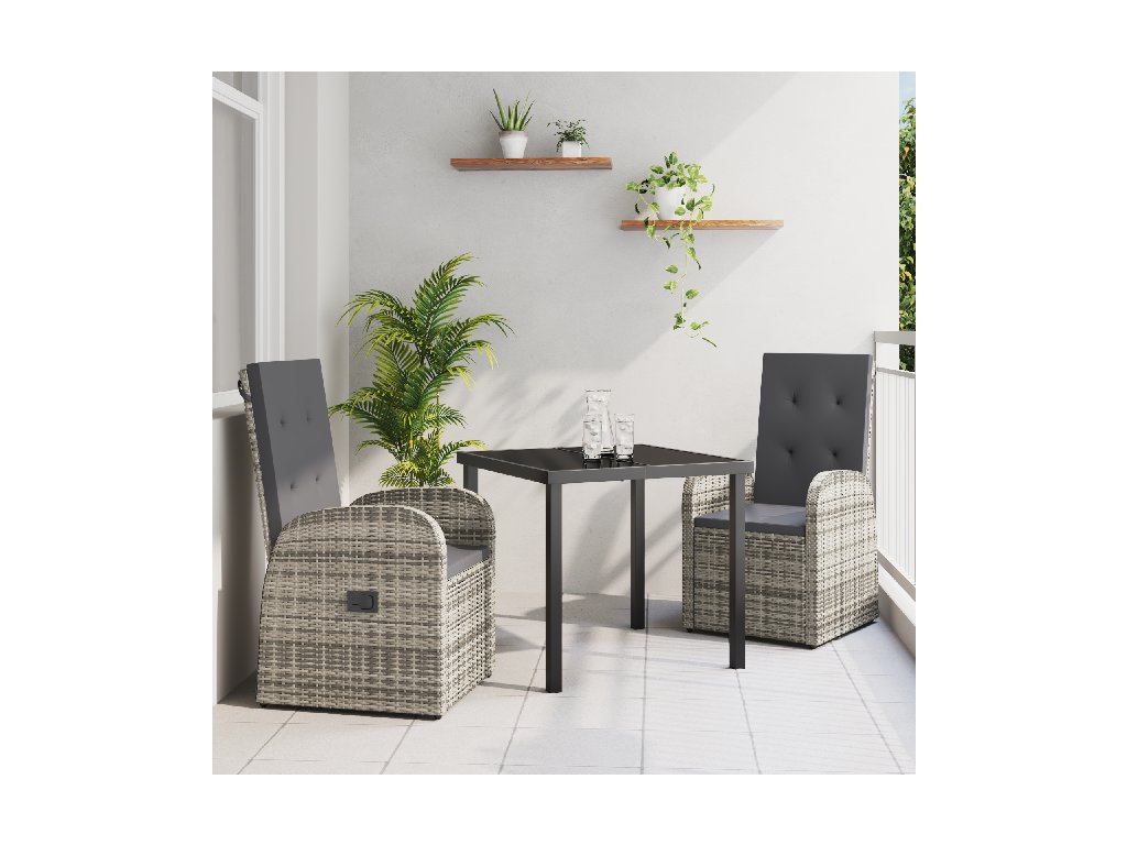 Tato skvělá sada sklápěcích křesel pro dvě osoby kombinuje moderní styl s pohodlím pro vaše venkovní prostory jako jsou terasy, balkony nebo zahrady. Vyrobené ze silného a odolného PE ratanu, křesla vydrží a dodají vašemu venkovnímu prostoru šmrnc.