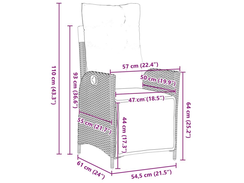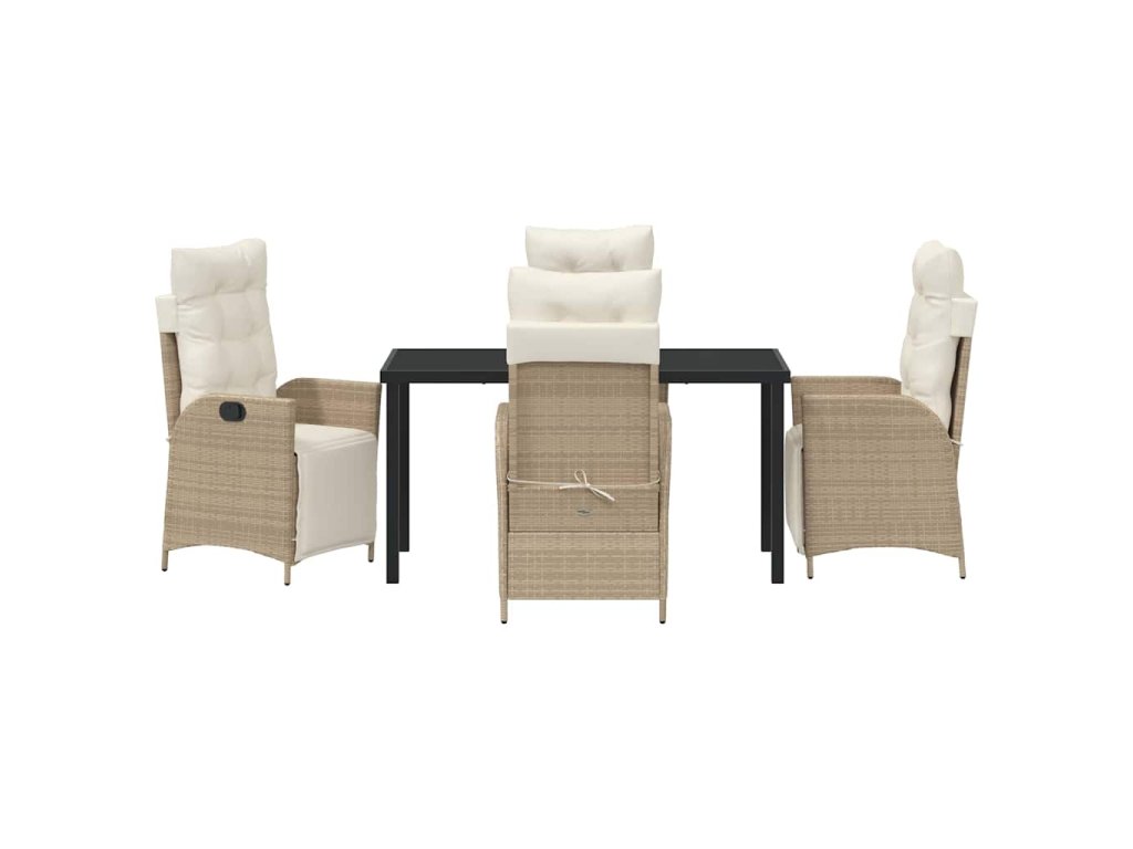 Tahle nastavitelná zahradní jídelní souprava posouvá venkovní lenošení a stolování na novou úroveň. Její elegantní a moderní styl s čistými liniemi a jednoduchostí dodává každému venkovnímu prostoru příjemný pocit. Ideální pro zahrady a terasy, skvěle se hodí na letní promoce a rodinné večeře. Černá tkaná textura skvěle ladí s práškově lakovaným kovem, takže máš stylový a odolný set, který vydrží, co počasí přinese, a je i pohodlný.