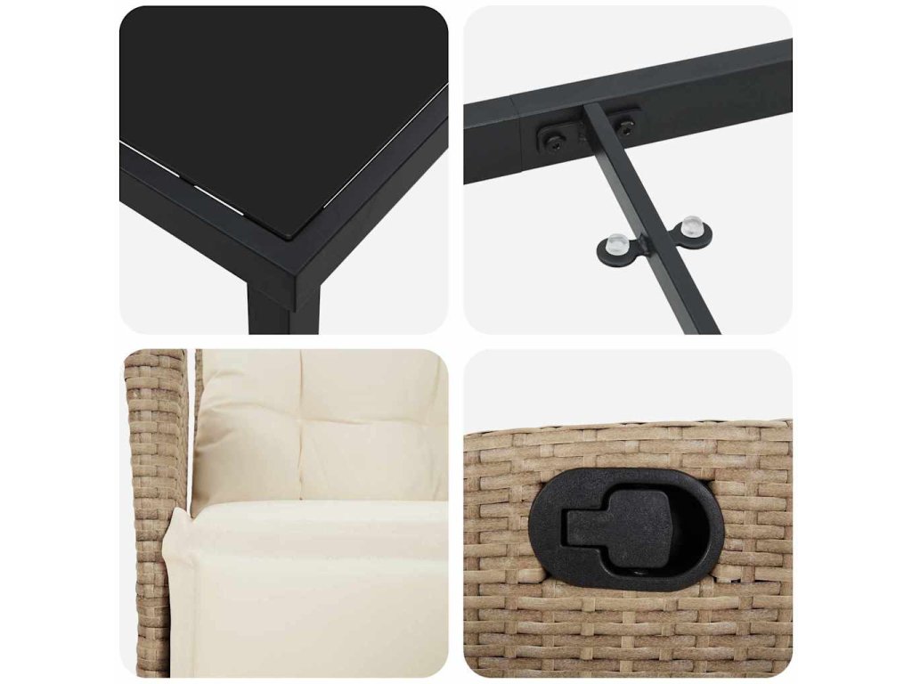 - Prémiové materiály: Vyrobené z poly ratanu a práškově lakované oceli, ta souprava vydrží různé počasí a je fakt trvanlivá. Poly ratan má hezkou tkanou texturu, ideální na venkovní použití, a práškově lakovaná ocel poskytuje pevný rám, který zvládne všechny roční období.