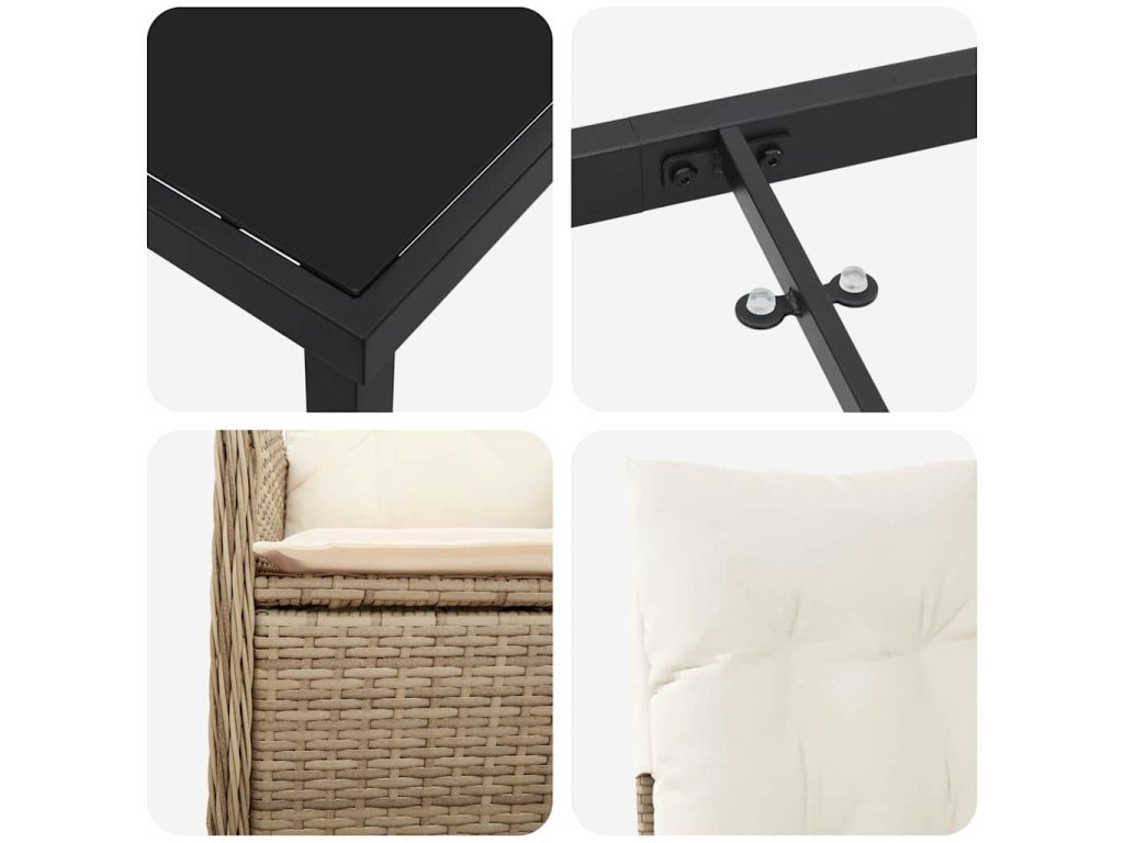 - Flexibilní použití: Ideální pro zahrady a terasy, tento set udělá dojem v každé venkovní oblasti. Skvělé pro rodinu, kamarády nebo páry, které chtějí relaxovat při slunných brunchích nebo pohodových večerech.