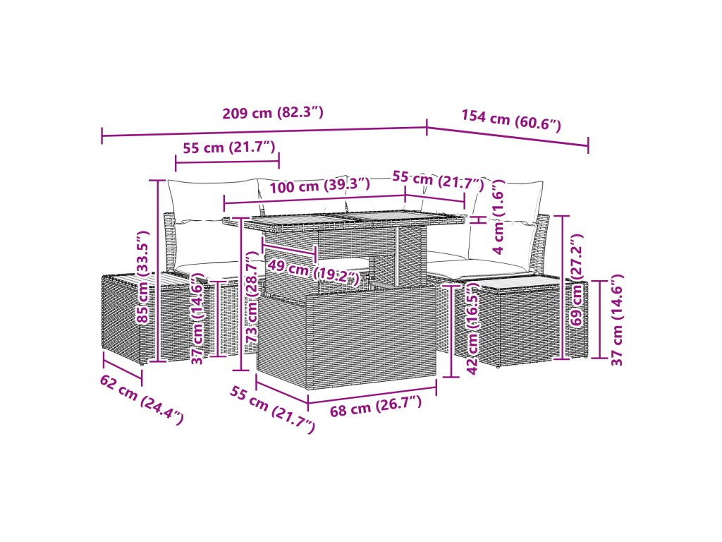 - Chytrý úložný prostor: Každé místo má úložný prostor na polštáře a venkovní vybavení, ideální pro udržení pořádku a skvělého vzhledu tvého venkovního prostoru.