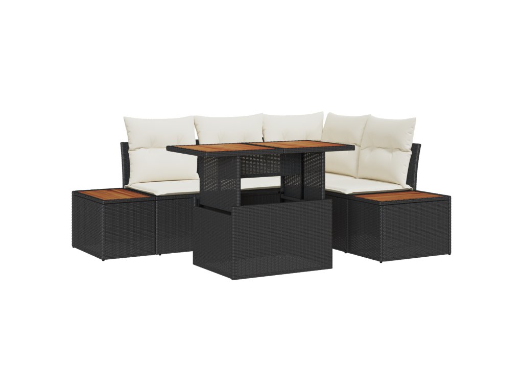 - Dodání obsahuje: 2 x Boční pohovka s úložnou funkcí, 1 x Rohové sedadlo s úložnou funkcí, 1 x Centrální sedadlo s úložnou funkcí, 1 x Zahradní stůl