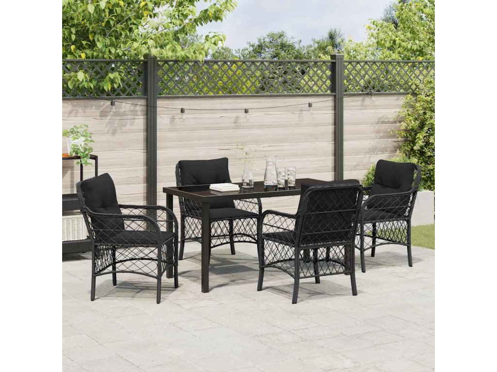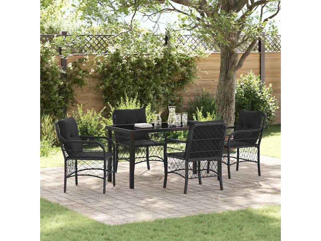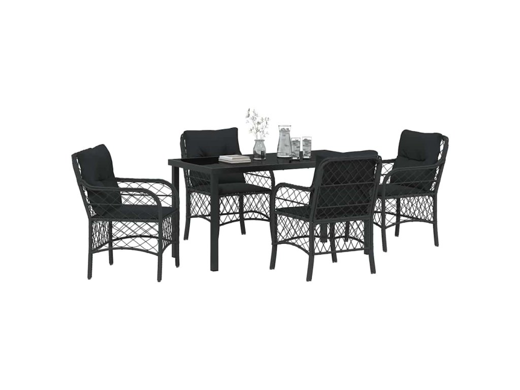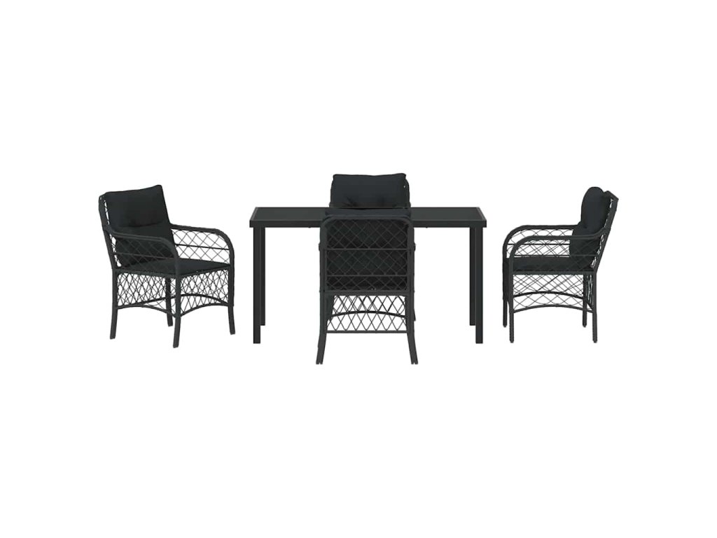 - Funkční designové prvky Set má stůl z tvrzeného skla, který spojuje styl a praktičnost. Tenhle čistý povrch udržuje vzhled v pěkném stavu a poskytuje pevné místo pro jídlo a pití. Je navíc odolný vůči špatnému počasí, což zvyšuje jeho trvanlivost.