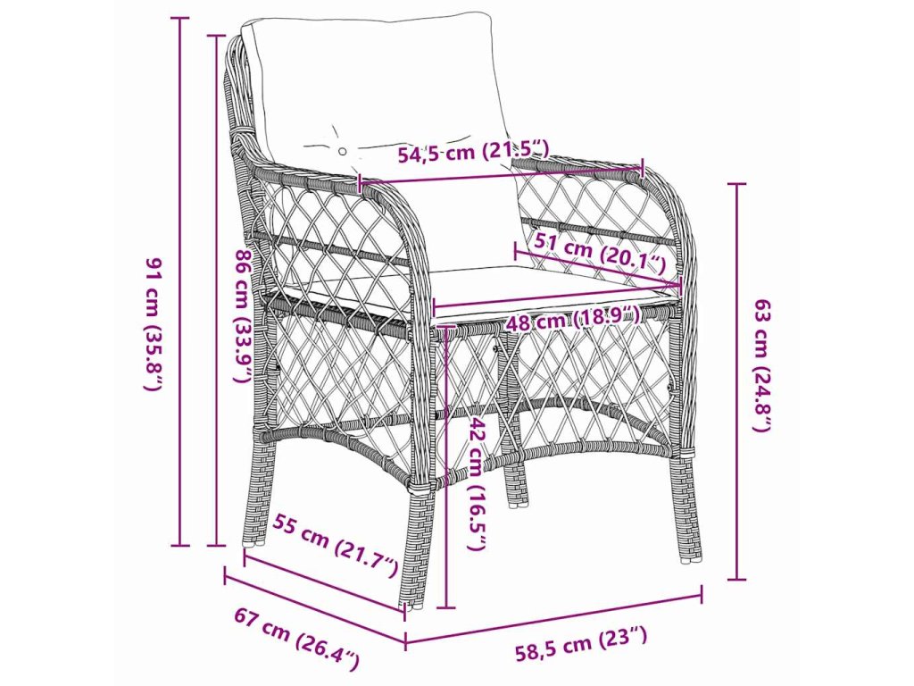 - Ergonomické vlastnosti S pohodlným opěradlem z polyratanu a plochými opěrkami rukou je tento set postaraný o vaše pohodlí. Má silné práškově lakované ocelové nohy a rám, které poskytují stabilní oporu na každodenní používání. Tyto komponenty skvěle spolupracují a zajišťují vám pohodlný zážitek při sezení.