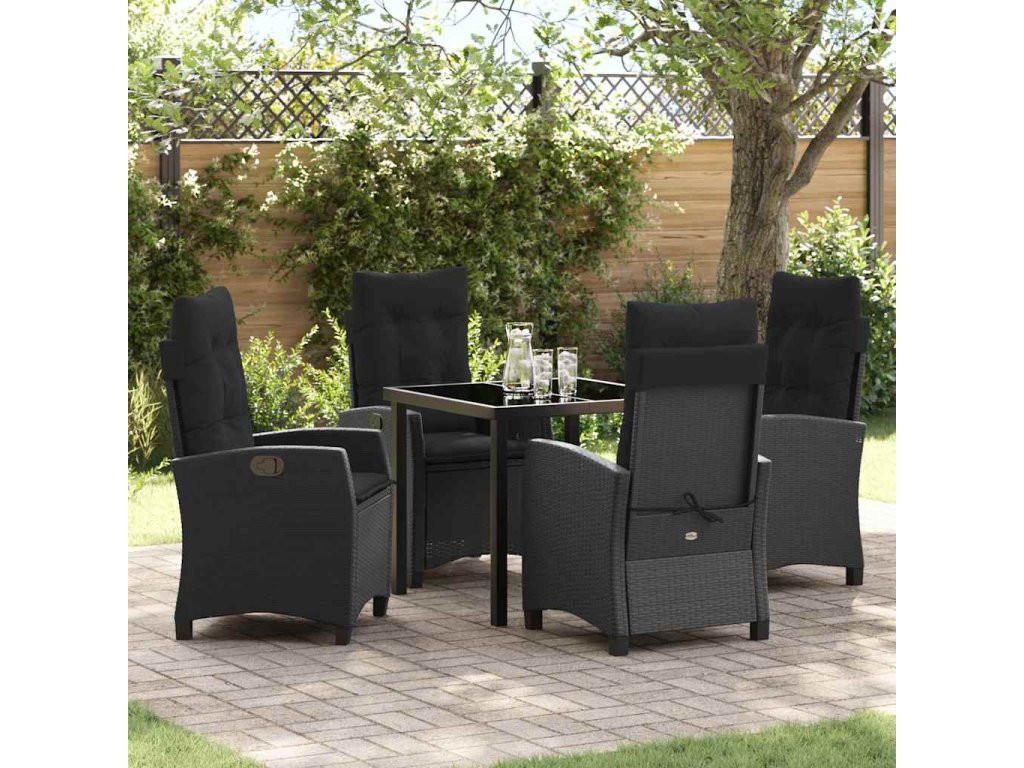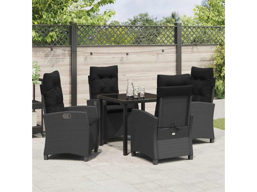 - Materiály: Zahradní jídelní set je vyrobený z elegantní kombinace poly ratanu, oceli a skla. Poly ratan vypadá skvěle a odolává počasí, ocel dodává pevnost a skleněný povrch je elegantní a snadno se čistí. Ta kombinace zajistí, že to vydrží a bude to vypadat dobře dlouho, připravené na všechno od deště po slunečné odpoledne.