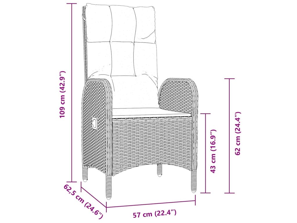 - 6 x Zahradní křeslo: 57 x 62.5 x 109 cm (ŠxHxV)