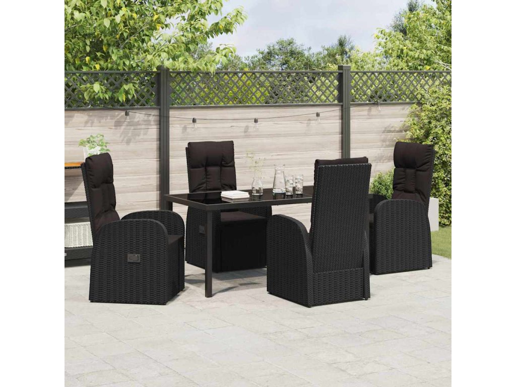 Tenhle moderní zahradní jídelní set udělá z vaší terasy nebo zahrady stylové místo pro venkovní jídlo. S jeho minimalistickým designem a funkčností si užijete chvilky s rodinou a přáteli. Hladké linie a elegantní černá barva skvěle ladí s každým okolím, a poskytnou stylový prvek pro vaše letní akce.