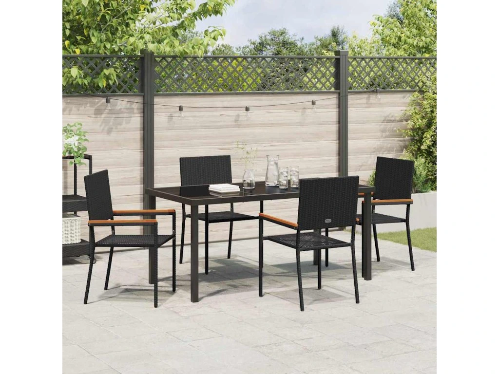 - Součásti: V setu jsou pohodlné židle, stůl se skleněnou deskou a pevné akáciové područky; všechno dohromady tvoří skvělý prostor pro venkovní jídlo.