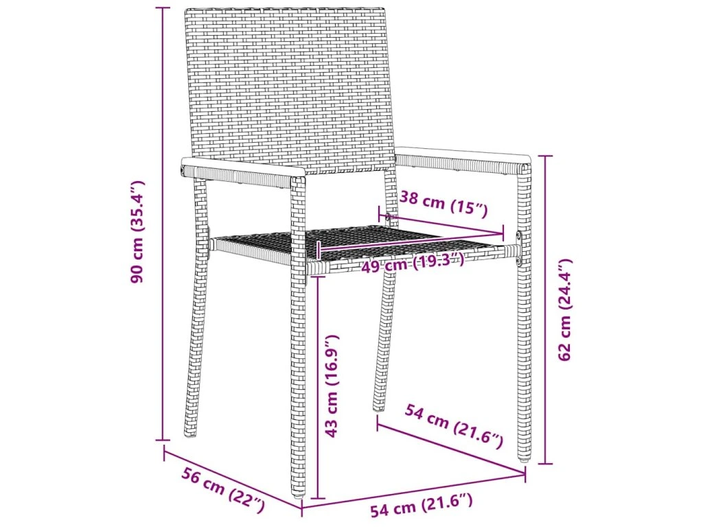 - 4 x Zahradní židle: 54 x 56 x 90 cm (D x Š x V)