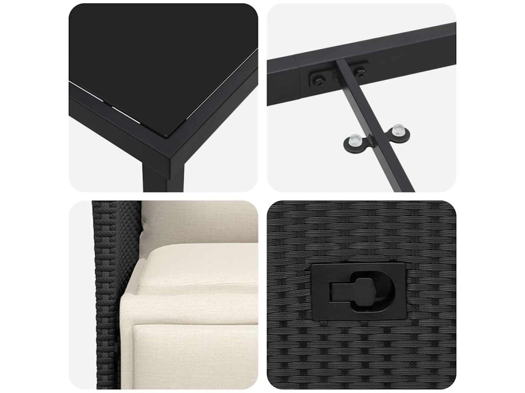 - Jednoduchá péče a údržba Chcete-li zajistit jeho dlouhou životnost, zakrývejte set, když ho nepoužíváte. Polštáře mají odnímatelné a pratelné potahy, což zjednodušuje údržbu a udržuje set v čistotě po celý rok.