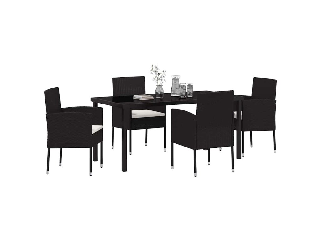 - Vysoce kvalitní materiály Tento jídelní set je z prémiového poly ratanu, který vyniká svou odolností a hezkým vzhledem. Ocelový rám dodává stabilitu, zatímco tvrzené sklo přidává eleganci a snadnou údržbu.