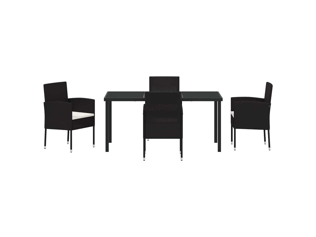 - Komplexní součásti Set zahrnuje stůl s černým tvrzeným skleněným vrchem a pohodlné sezení s poly ratanovými opěradly a područkami. Každé místo má venkovní polštář pro zvýšení pohodlí při jídle nebo relaxaci. Čtvercové nohy dodávají moderní vzhled a zajišťují stabilitu setu.