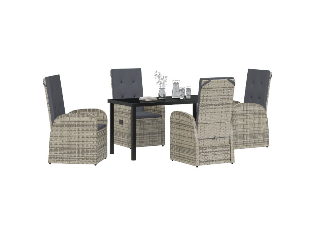 Tato sada sklápěcích zahradních židlí přináší moderní styl do venkovního prostoru, od patio po balkony. V elegantním šedém poly ratanu a tmavě šedých polštářích, tyhle židle potěší oko a jsou super pohodlné na odpočinek na slunci.