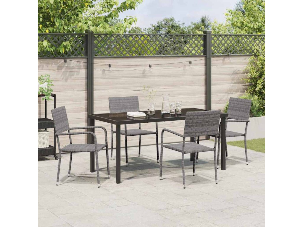 - Součásti: Sada obsahuje křeslo s poly ratanovým opěradlem pro maximální pohodlí. Skleněná deska má hladký povrch na stolování a čtvercové nohy zajišťují stabilitu.