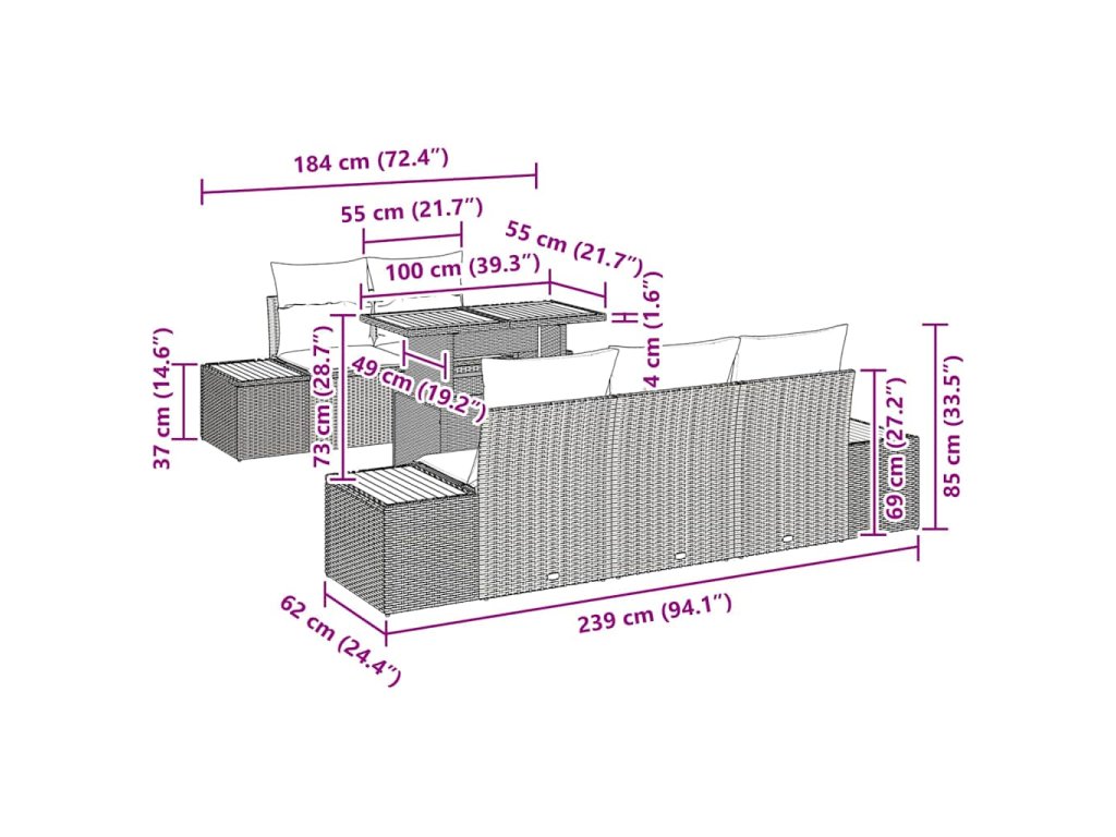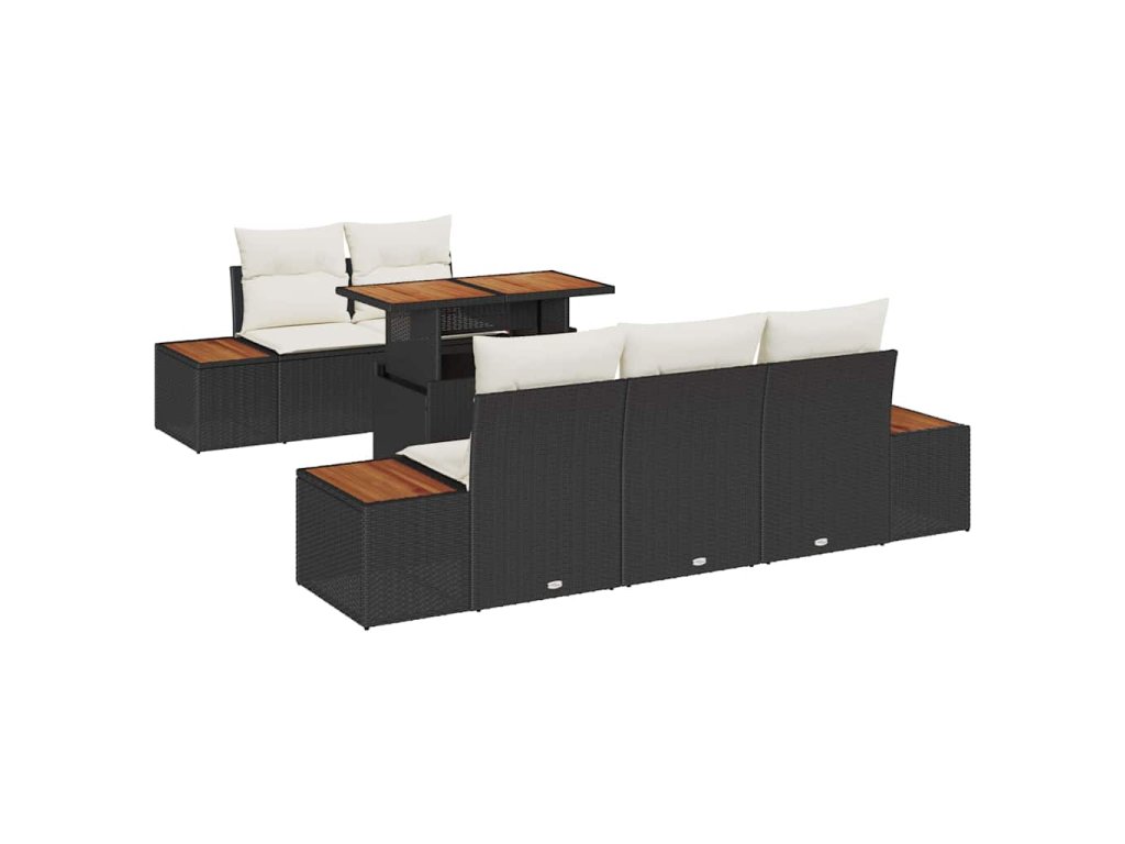 - Dodávka obsahuje: 4 x boční pohovka s úložištěm, 1 x středová pohovka s úložištěm, 1 x zahradní stůl