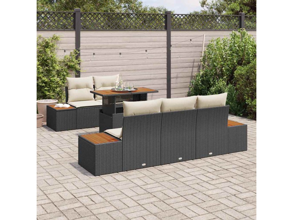 Tato sada šesti kusů zahradního jídelního nábytku spojuje eleganci s funkčností pro venkovní akce. Díky trendy designu kombinuje kvalitní poly ratan, měkké polštáře a skvělý dřevěný stůl, což vytváří úžasné uspořádání ideální pro stolování nebo relaxaci na balkóně či terase.