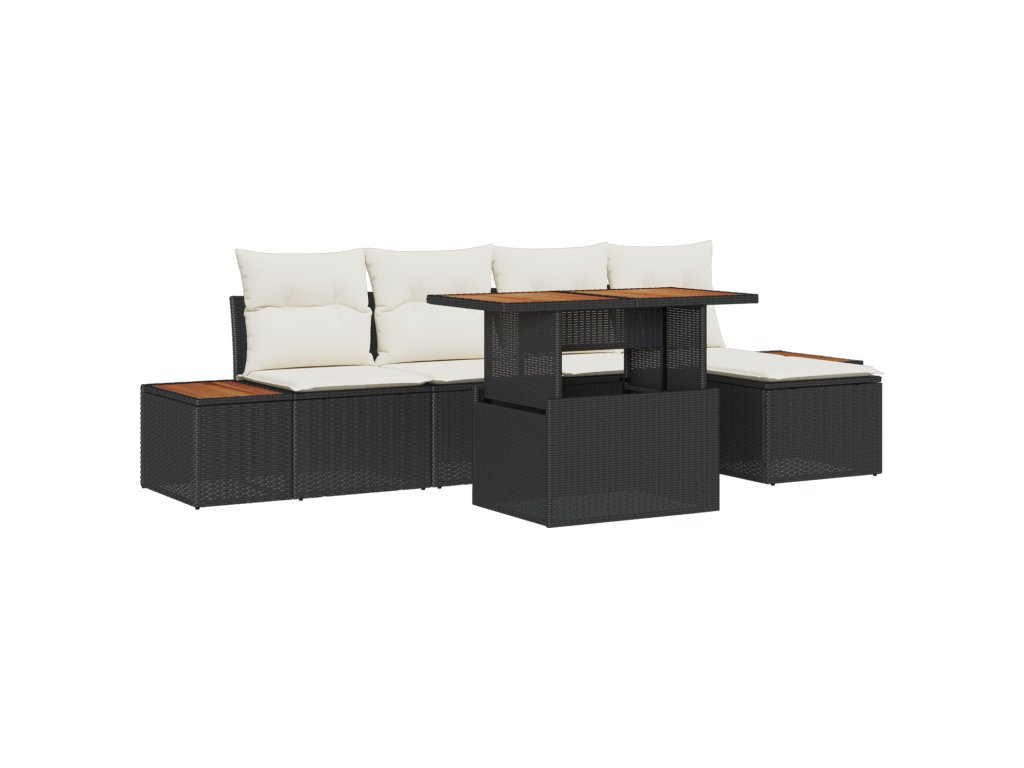- Doručení obsahuje: 2 x Boční pohovka s úložným prostorem, 2 x Střední sedadlo s úložným prostorem, 1 x Taburet s úložným prostorem, 1 x Zahradní stůl