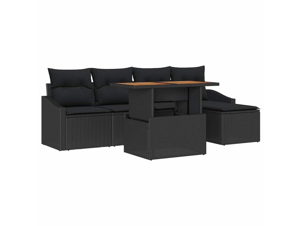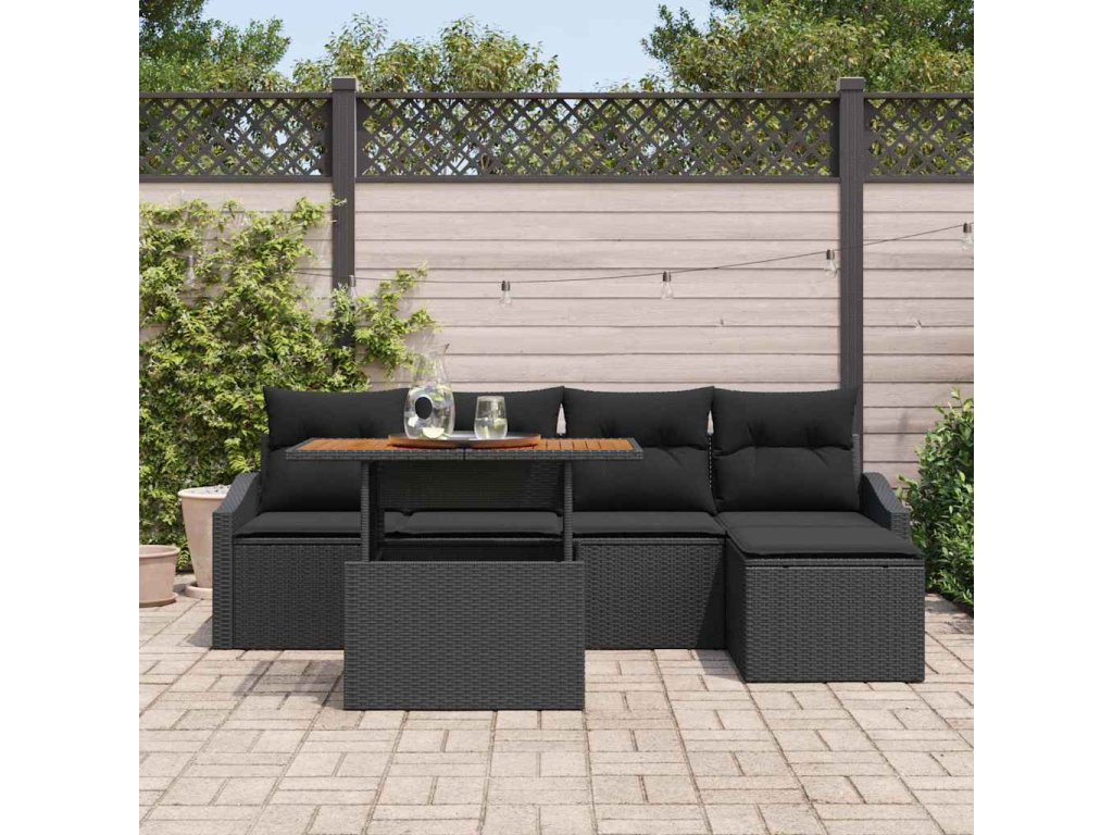 - Součásti: Sada se skládá ze dvou arm sof, dvou středových sedadel, podnožky se skladovacími schopnostmi a odpovídajícího zahradního stolu. Každý kus je dokončen poly ratanem a doplněn povrchy z akáciového dřeva.