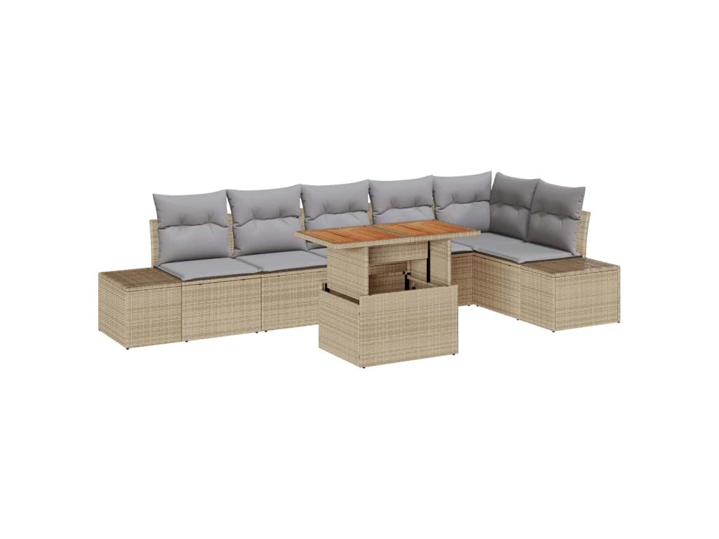 - Dodání obsahuje: 2 x boční pohovky se úložným prostorem, 1 x rohové sedadlo se úložným prostorem, 3 x středové sedáky se úložným prostorem, 1 x zahradní stůl