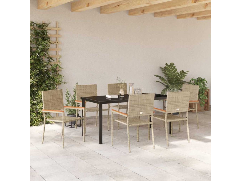 - Materiály: Tenhle set je z odolného poly ratanu, který skvěle doplňuje venkovní prostředí. Tvrzené sklo na stole je snadno čistitelné a vypadá super.