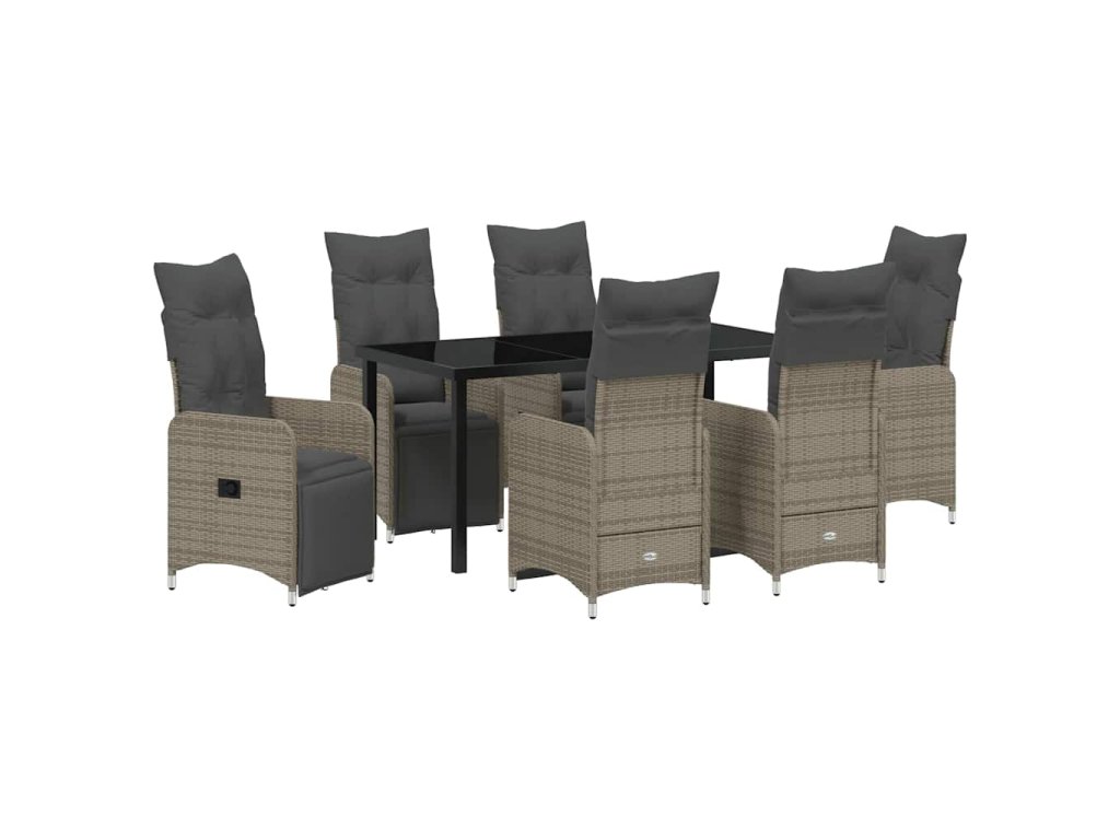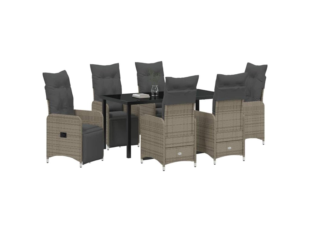 - Celá sada komponentů: Set zahrnuje pohodlné poly ratanové opěrky i zádové opěrky, stylový povrch z tvrzeného skla a čtvercové nohy z práškově lakované oceli. Tím se zajišťuje elegantní a stabilní vzhled, navíc jsou součástí venkovní polštáře s odolnou tkaninou a odnímatelnými, pratelnými potahy.
