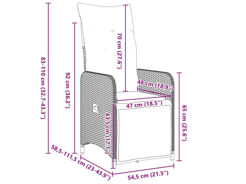 - Univerzální funkce: S vícestupňově nastavitelným opěradlem si každý může upravit úhel sedění tak, aby mu to vyhovovalo. Přizpůsobí se různým aktivitám – od stolování po lenošení.