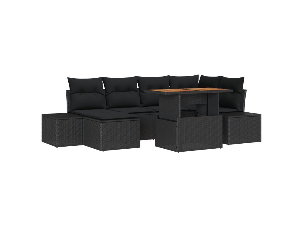 - Dodávka obsahuje: 2 x Boční pohovky s úložnou funkcí, 1 x Rohové sezení s úložnou funkcí, 2 x Střední sezení s úložnou funkcí, 1 x Podnožka s úložnou funkcí, 1 x Zahradní stůl