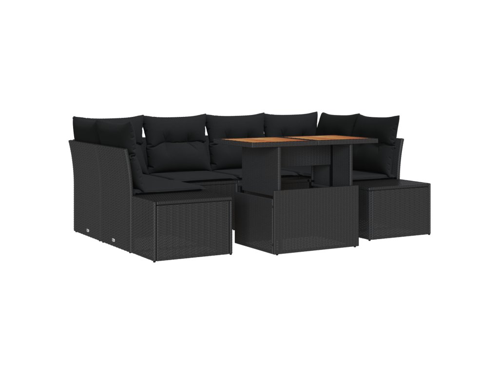Tahle 7-dílná venkovní jídelní souprava dělá z terasy nebo zahrady skvělé místo na letní grilování nebo podzimní setkání. Má moderní vzhled, co se hodí jak do klasických, tak moderních venkovních prostor. Souprava obsahuje zahradní stůl a modulární sezení, navržené pro pohodlný a praktický odpočinek. Černý povrch a tkaný poly ratan vypadají skvěle a jsou ideální pro venkovní použití.