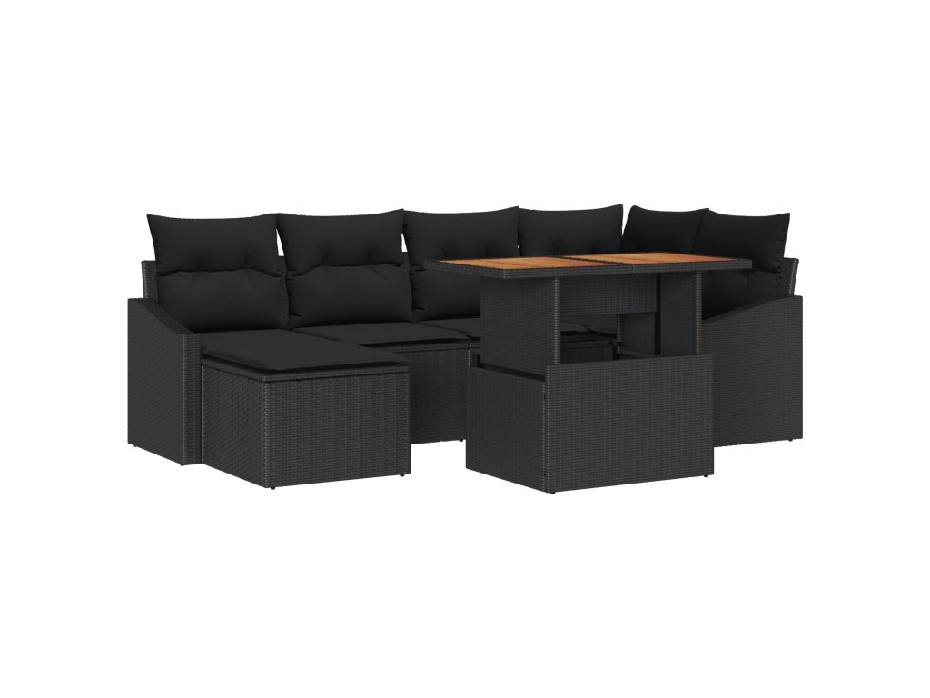 Tento 7-dílný zahradní jídelní set je perfektní mix stylu a praktičnosti. Má moderní design a pohodlné polštáře, což z něj dělá ideální místo pro uvolnění při jídle nebo setkání s přáteli a rodinou na zahradě nebo patio.