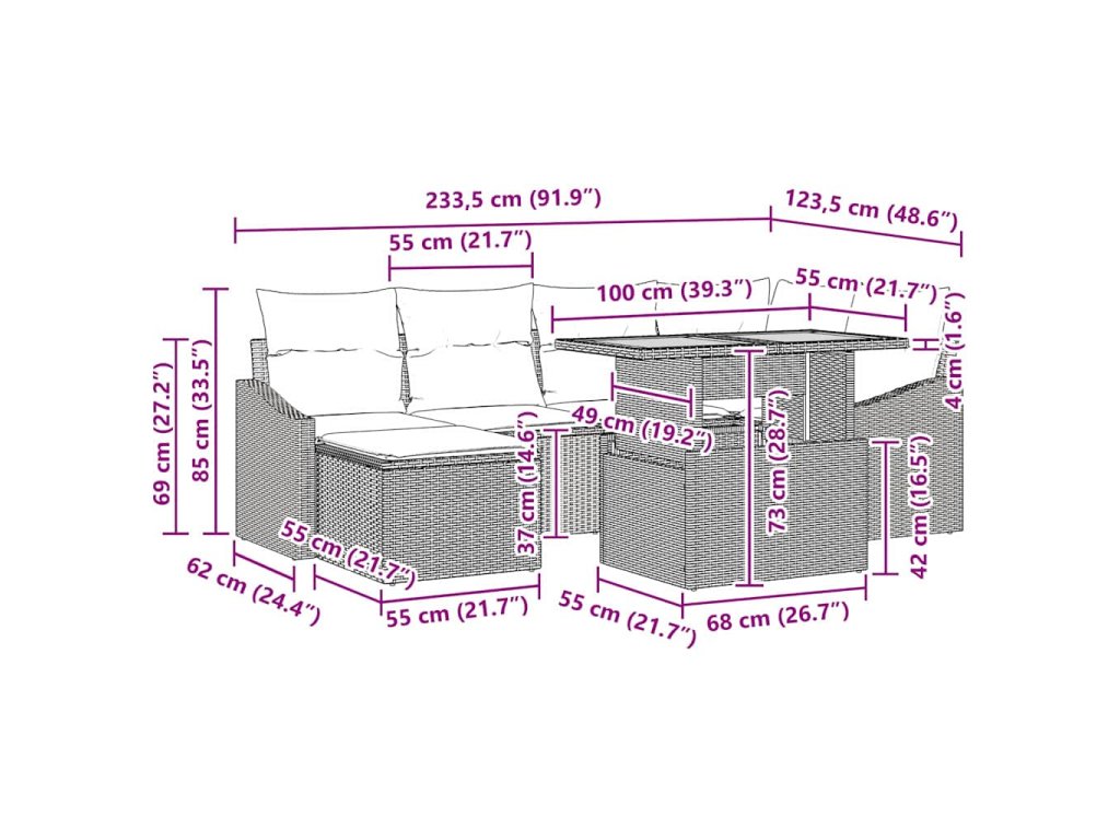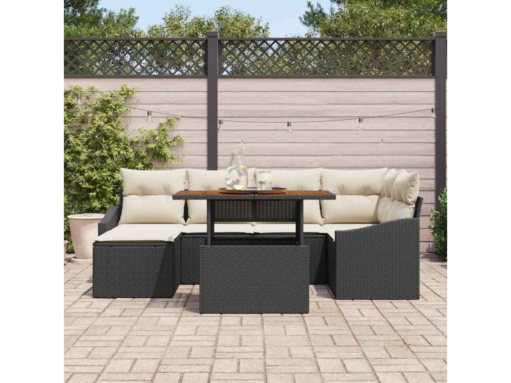 Tato 7 dílná zahradní jídelní souprava spojuje styl a užitečnost, a vytváří příjemné venkovní místo. Různé možnosti sezení a elegantní stolek dělají z tohoto setu skvělou volbu pro setkání, grilování nebo jen užívání kávy venku.