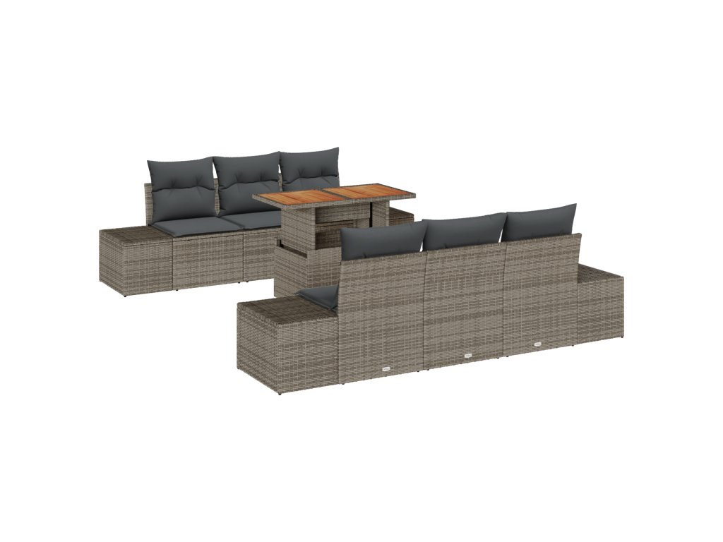 Tento 7dílný zahradní jídelní set s polštáři je určený na venkovní relaxaci, kombinuje užitečné funkce s moderním stylem. Skvělý design se hodí na jakýkoli balkon nebo terasu, ideální na rodinná setkání nebo letní večírky s partou.