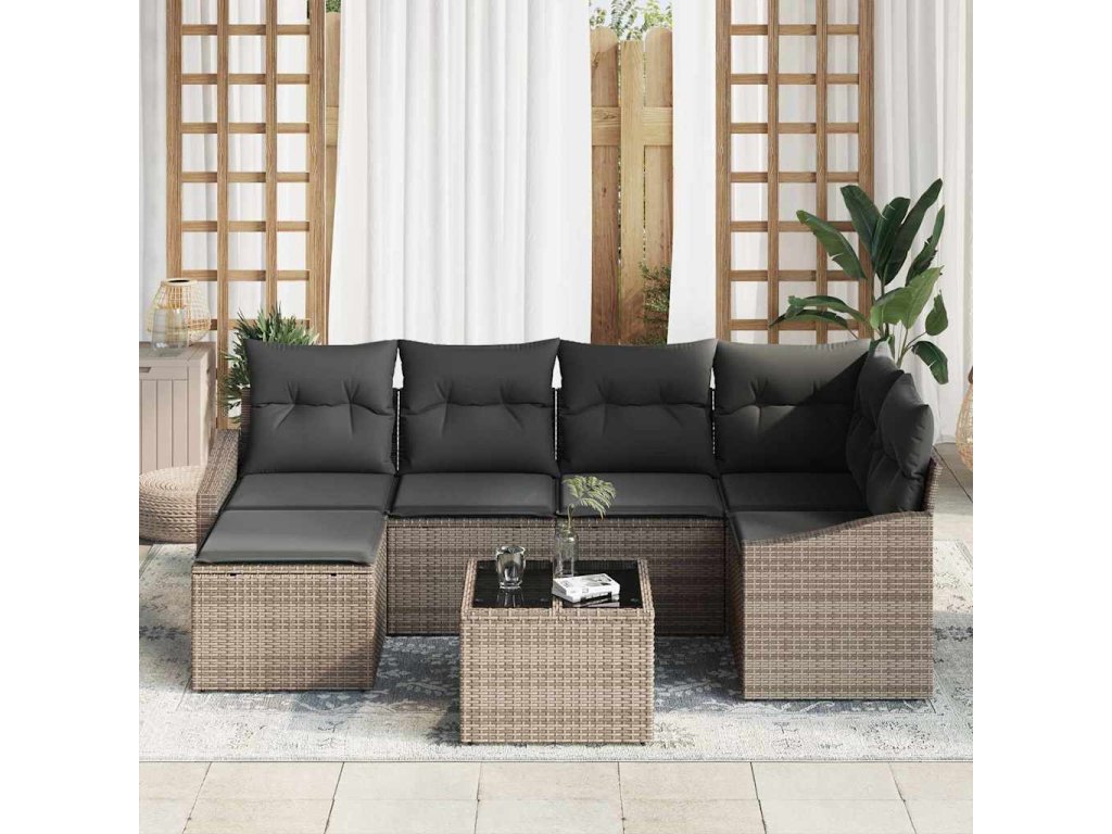 Tento trendy venkovní sofa set pro šest lidí dodá tvé zahradě nebo terase moderní vzhled. S elegantními liniemi a minimálními detaily je ideální pro jakýkoliv venkovní prostor a kombinuje funkčnost se stylem. Ať chystáš letní párty nebo jen relaxuješ venku, tenhle set je skvělý doplněk pro tvůj venkovní prostor.