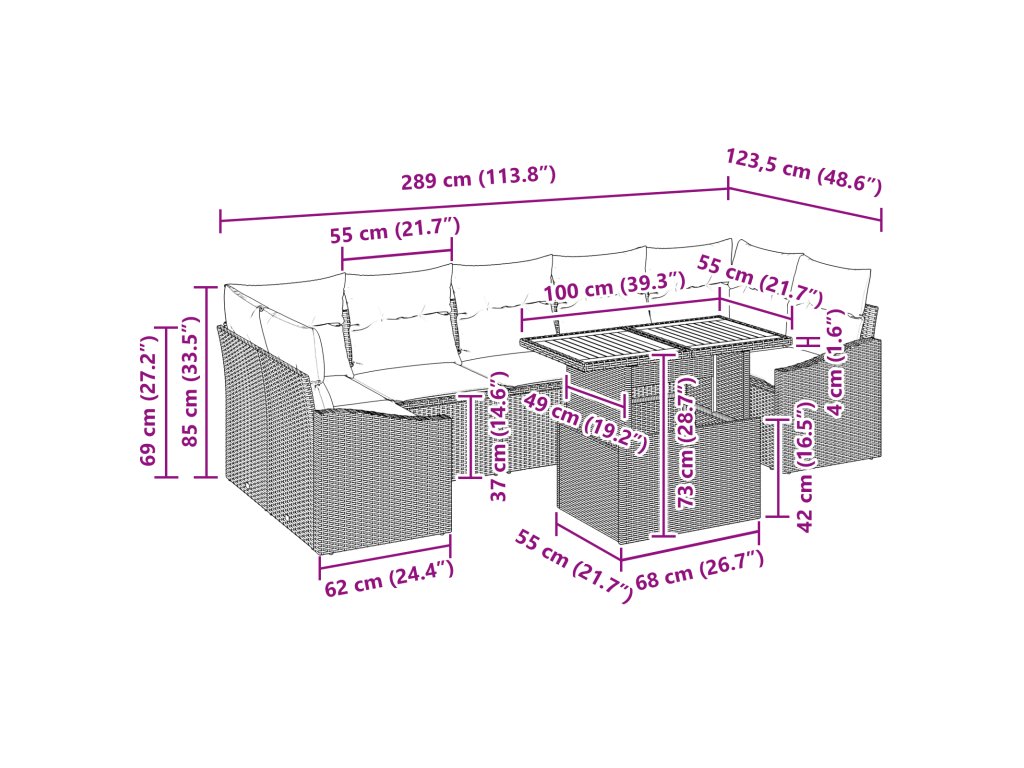 - Prostorné sezení: Tento jídelní set pojme sedm lidí, ideální pro sdílení jídla nebo pořádání akcí. Jeho modulární uspořádání ti dovolí upravit aranžmá podle potřeby, takže tvé patio proměníš v zónu pro zábavu.