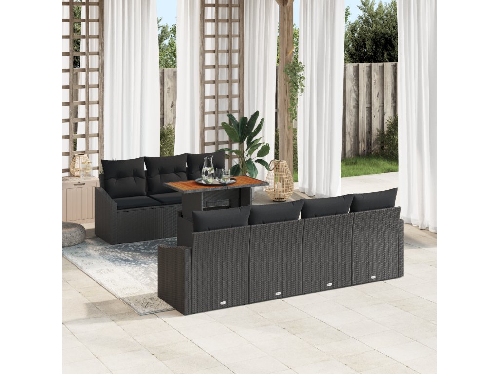 Tenhle zahradní jídelní set skvěle kombinuje styl a praktičnost, skvělý přírůstek do venkovních prostor. Vyrobený z poly ratanu a dřeva, jeho parádní povrch a pohodlné polštáře vytvářejí útulnou atmosféru pro relaxaci nebo společnost.