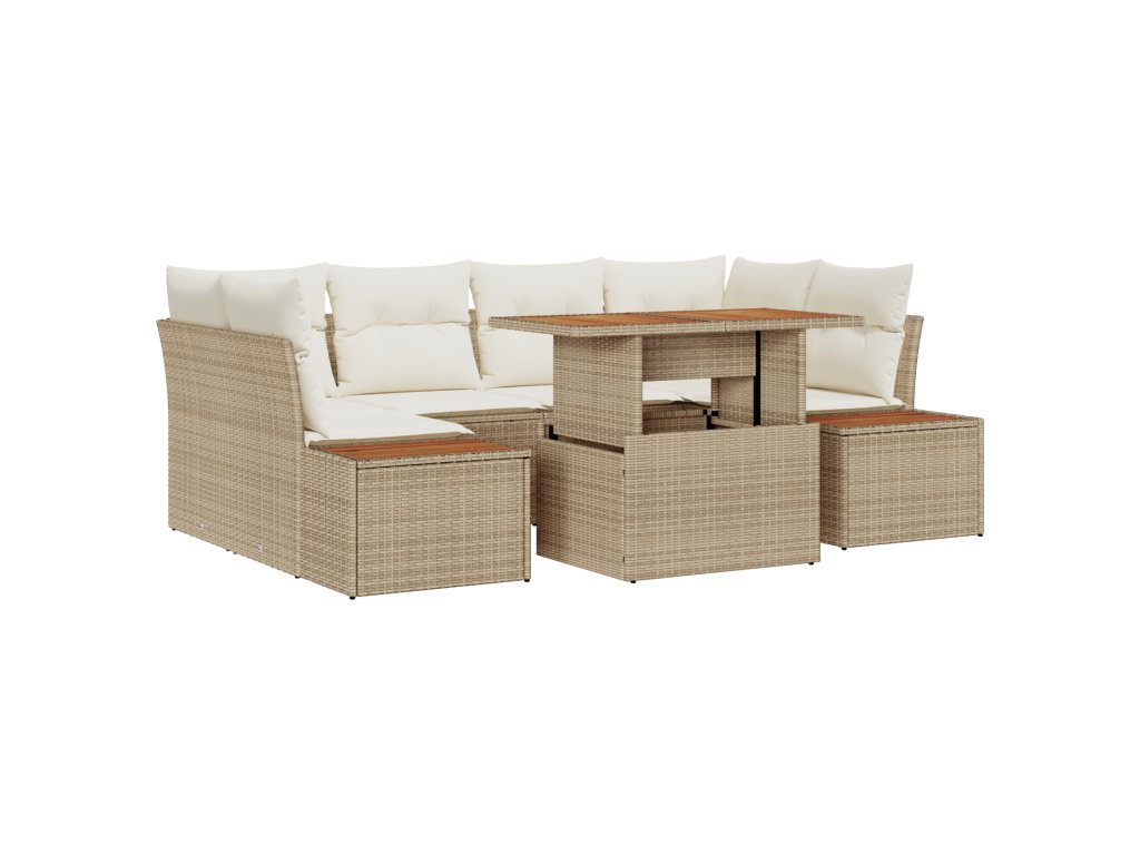 - Dodávka obsahuje: 2 x boční pohovky s úložným prostorem, 1 x rohové sedadlo s úložným prostorem, 2 x centrální sedadla s úložným prostorem, 1 x zahradní stůl