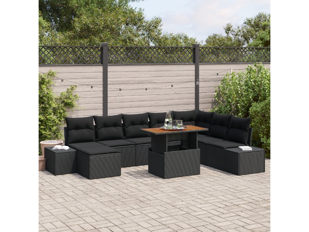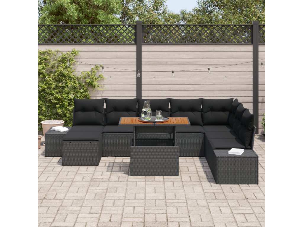 Tato 9dílná zahradní jídelní souprava dodává elegance a funkčnost každému venkovnímu prostoru. Je navržená pro shromáždění, jídlo nebo odpočinek. Vyrobená z kvalitního ratanu, má moderní dojem a zajišťuje trvanlivost, což z ní dělá skvělou volbu pro různé venkovní místa.