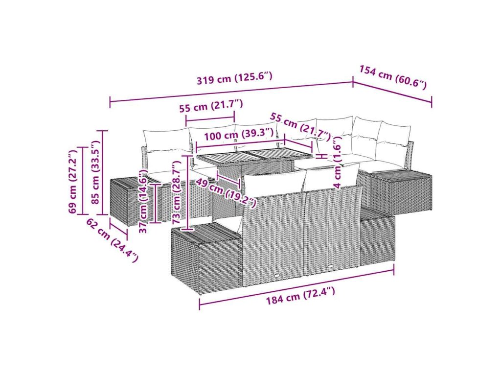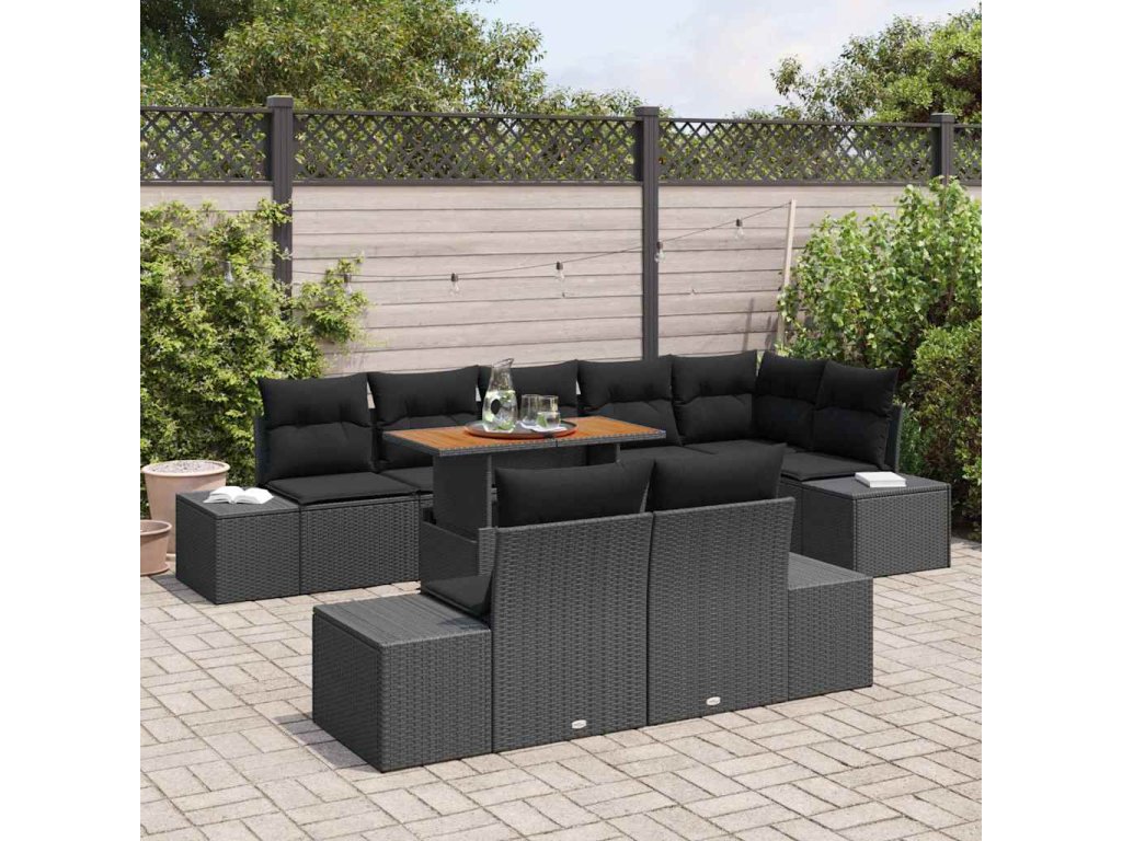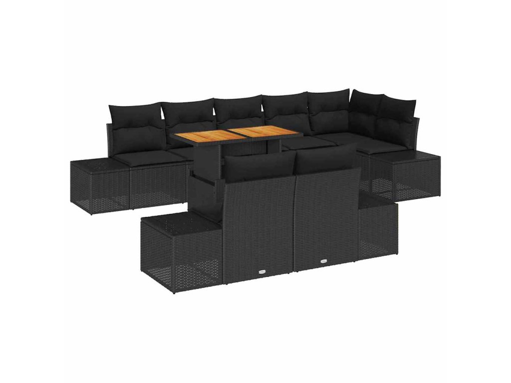 - Dodávka obsahuje: 4 x boční pohovku s úložným prostorem, 1 x rohové sedadlo s úložným prostorem, 3 x středové sedadlo s úložným prostorem, 1 x zahradní stůl