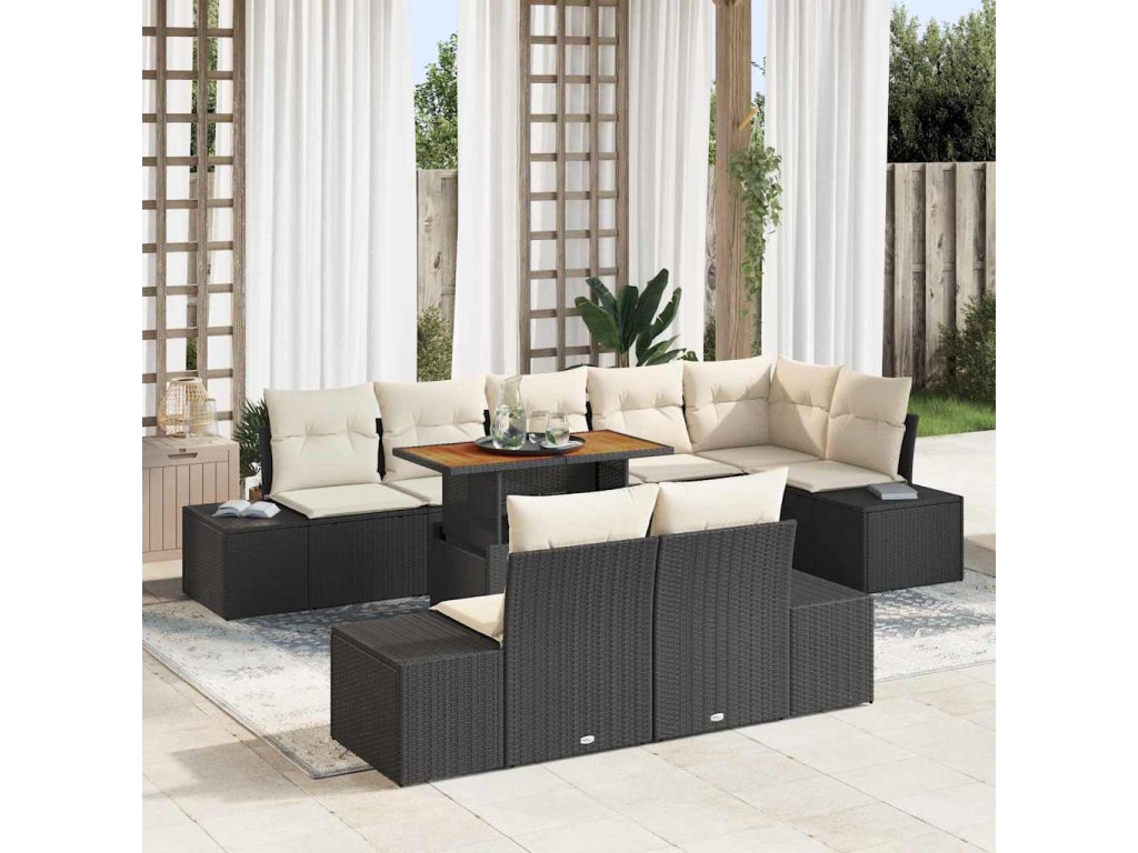 Tento devítidílný zahradní jídelní set je skvělý kompromis mezi stylem a praktičností, ideální na venkovní jídlo a odpočinek. Má pohodlné polštáře a robustní konstrukci, což je perfektní pro rodinná sezení nebo lenošení s kamarády na sluníčku.