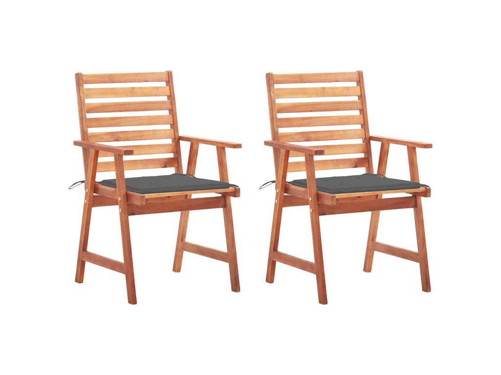 Tato moderní sada dřevěných jídelních židlí s poduškami dodá vaší zahradě, terase či dvorku nádech přírodního stylu. Představuje skvělou volbu pro stolování na čerstvém vzduchu.