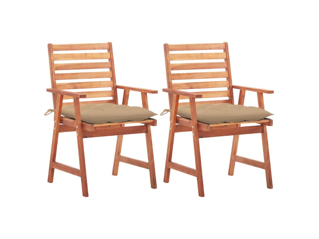 Tato moderní sada dřevěných jídelních židlí s poduškami dodá vaší zahradě, terase či dvorku nádech přírodního stylu. Představuje skvělou volbu pro stolování na čerstvém vzduchu.